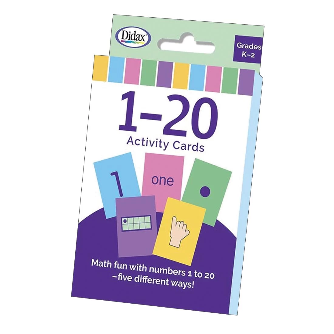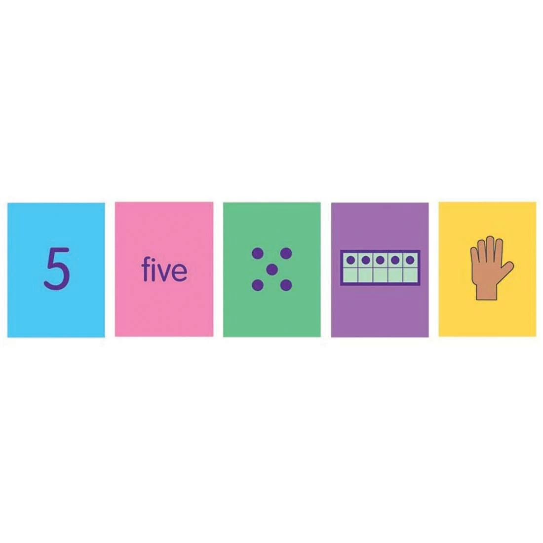 This colorful deck represents the numbers 1 to 20 in five different ways: numerals, words, dot patterns, ten-frames and fingers. Use for a variety of fun, educational games to develop skills ranging from early counting to operations. Includes activity ideas. 102 cards, each measures 2-1/2 x 3-1/2″.
