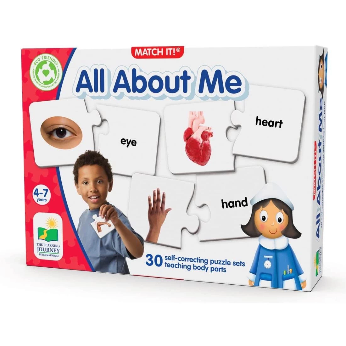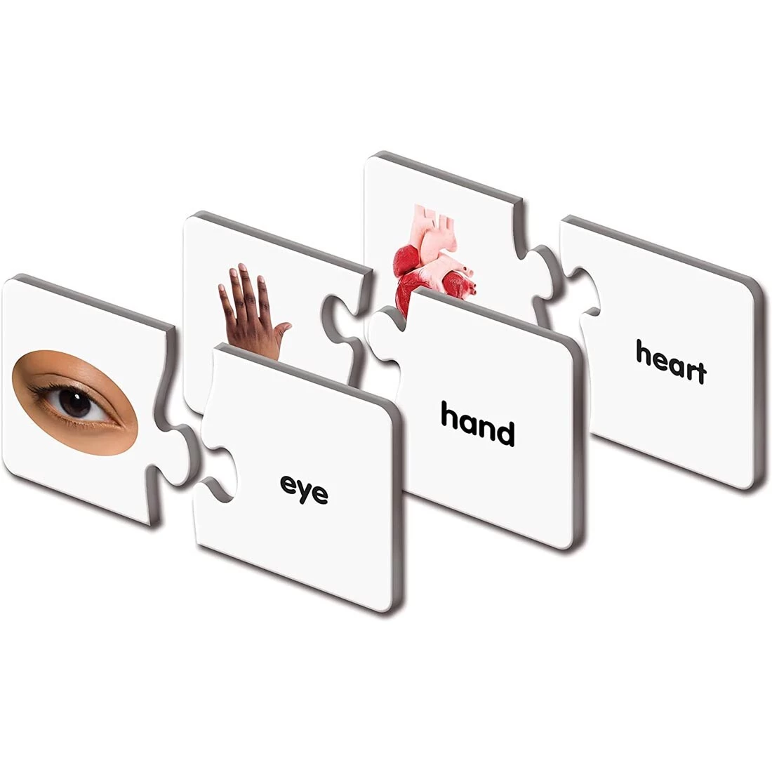 Colorful set of body parts puzzles provides children with an excellent introduction to basic anatomy. Each puzzle card features a picture of a body part or the word that names a body part. Simply match the body part with the word to complete the puzzle. The puzzles are self-correcting as no two puzzle cuts are the same. 30 puzzle pairs. Recommended for ages 4 and up.
