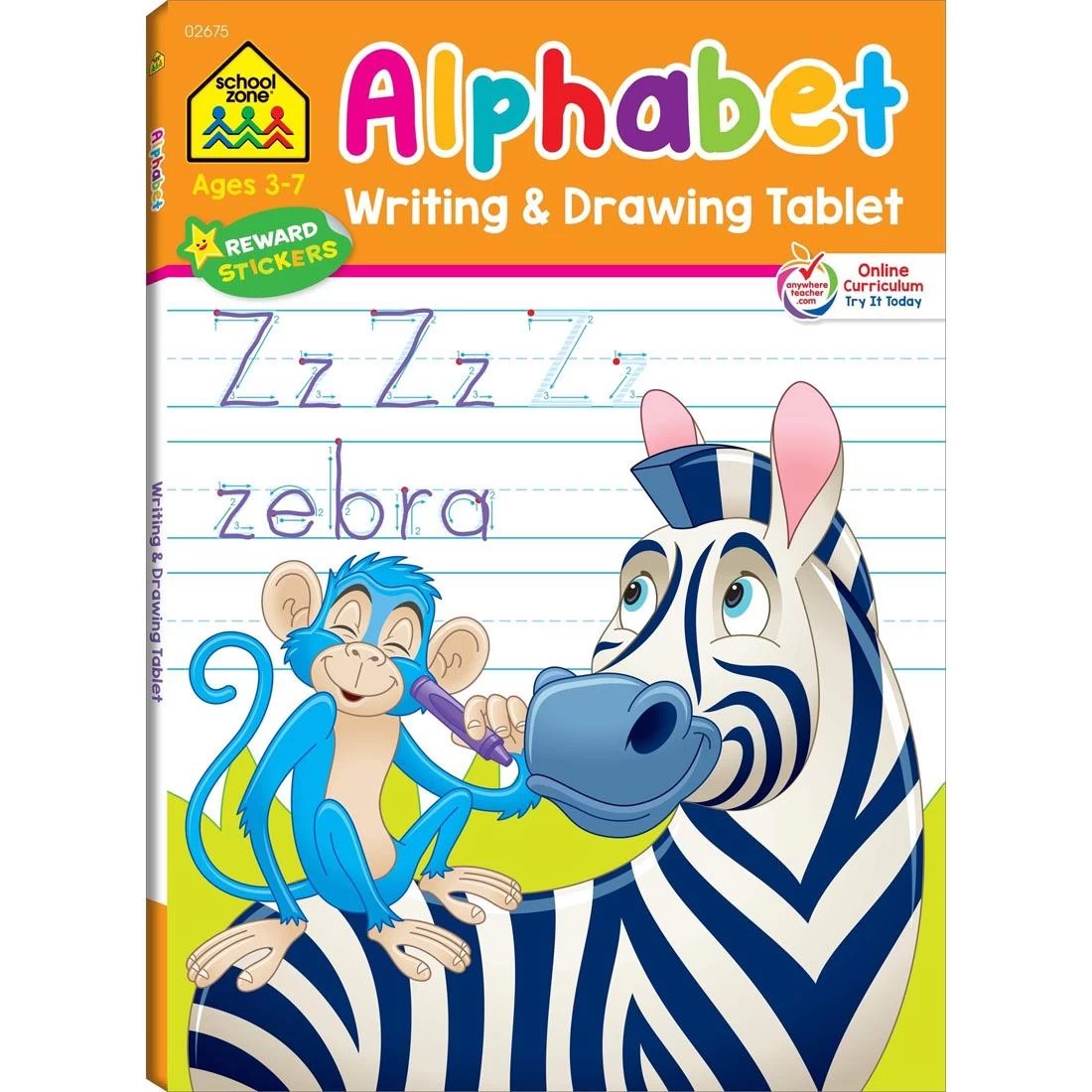 Kids will love printing their ABCs, entire words, and silly sentences with this take-anywhere tablet. Traceable uppercase and lowercase letters of the alphabet will help kids learn to correctly write each letter on their own, and fun activities on every page reinforce how letters work. Also features words, sentences and practice with sound repetition: “Newts nap at noon.” Kids even get to finish drawing some newts to match the sentence. Features 7/8″ ruled paper for accurate letter proportion and placement, and 96 practice and activity pages. Plus, the tablet includes a sticker for each letter of the alphabet and a sticker of a critter or object that starts with that letter. The vertical, portrait-oriented cover makes it easy to drop into a backpack, yet the horizontal, landscape-oriented pages offer lots of space for writing practice. Because it lays flat, left-handed writers will have free space on the left side. Some pages feature space to trace or create a drawing. Designed for ages 3-7.