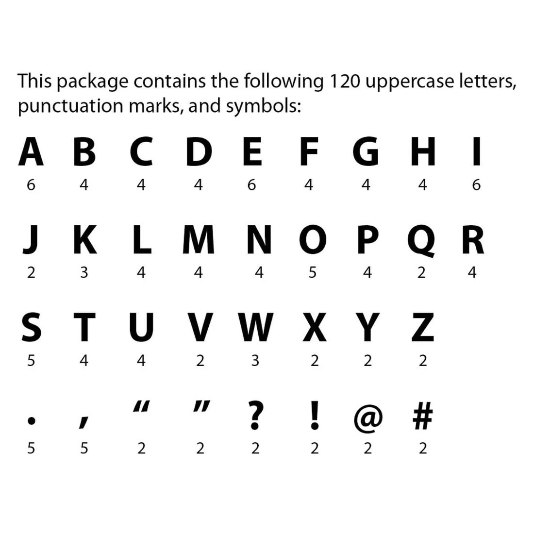 Create big, eye-catching headlines. Script-style, punch-out letters are white in the center with a thick black edging, making them visible from a distance. Great for messages on bulletin boards, whiteboards or in the hall. Features uppercase letters, symbols and punctuation marks. 120 pieces, measure approximately 7″ tall.