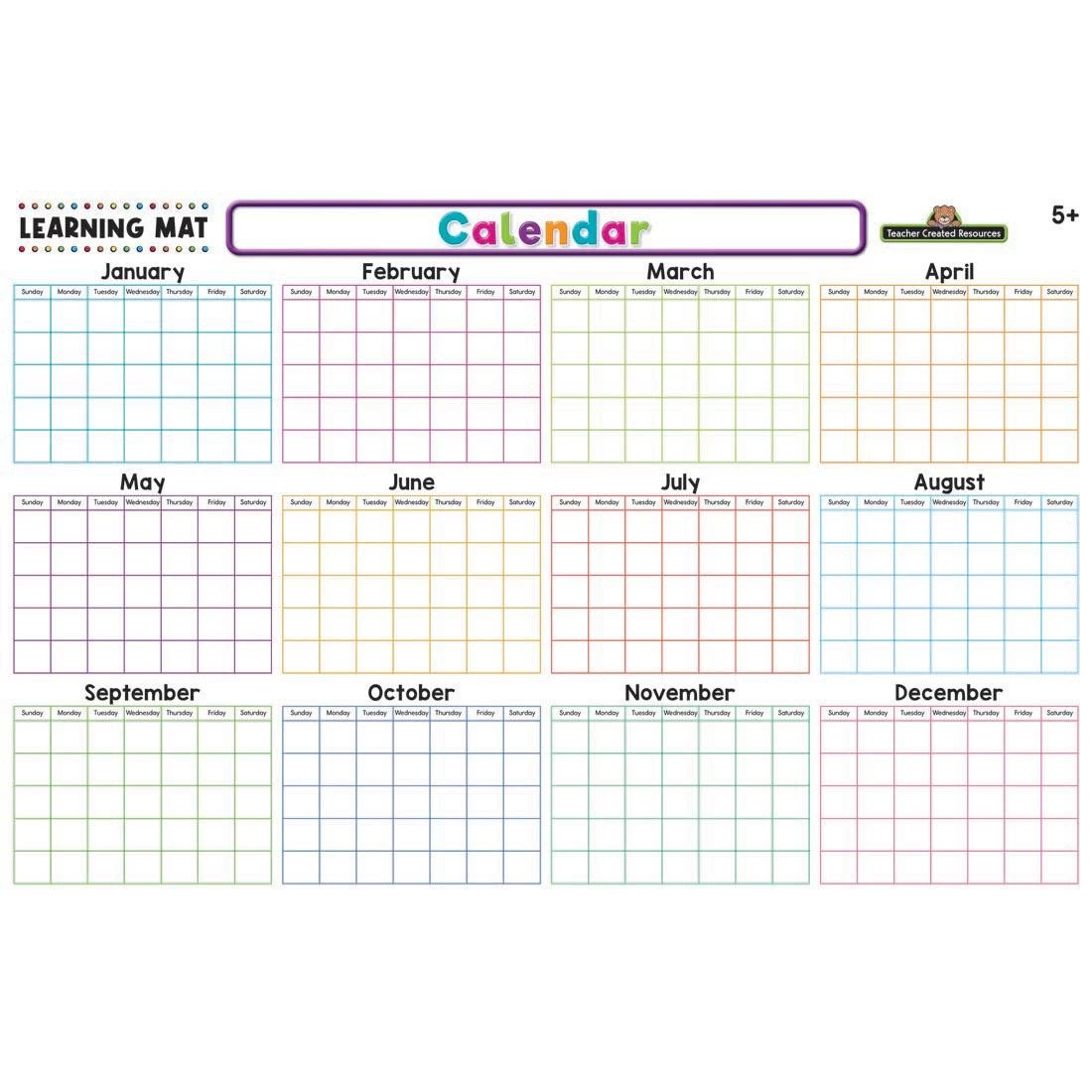 Durable, double-sided, write-on/wipe-off mat is designed to help students learn months, days of the week, seasons, weather and more. The front features all 12 months without dates, so students can write the date in the correct spaces. The reverse features a daily calendar, where kids circle the correct month, day of the week and date, plus the season, weather and how they feel. There is also space for them to write what they have circled or add to how they feel. Great for use at home, school or even in the car. Use with dry erase crayons or markers, sold separately. Not for use with regular markers or crayons. Use a paper towel or cloth to wipe clean. Can be fully cleaned with disinfecting wipes; or with soap, warm water, and a non-abrasive sponge. Dry completely before re-use. For ages 5 and up.