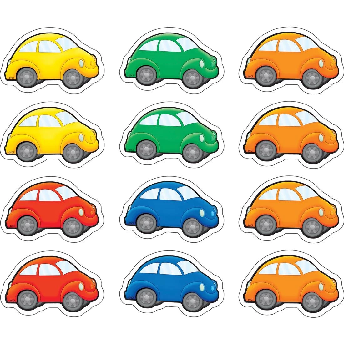 Have fun decorating with these colorful little cars! Each piece measures about 2-5/8″. Use them to accent displays, fill in monthly calendars, or as tokens for learning games like sorting, patterning and graphing. Cars come in 5 different colors and there are 36 pieces per pack.
