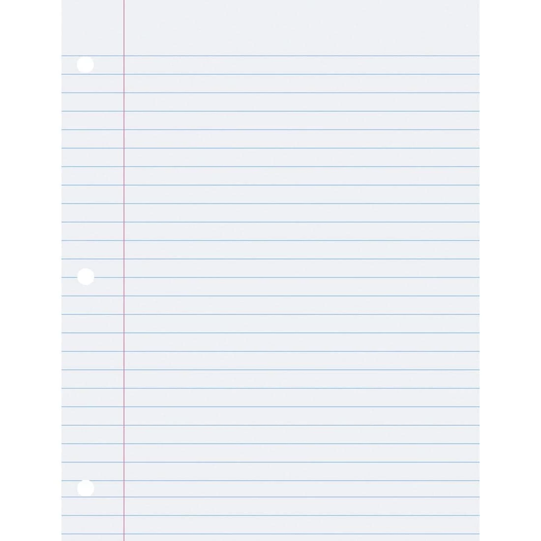 White, wide ruled composition paper is perfect for taking notes, practicing spelling and writing stories. 8-1/2 x 11″ sheets feature a red margin line and are pre-punched to fit into 3-ring binders. 3/8″ ruling. 500 sheets.
