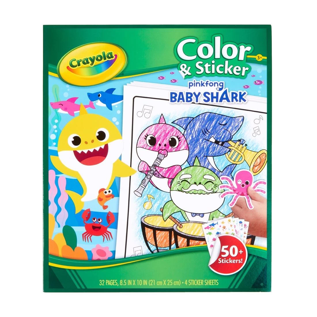 Great for kids who love the Baby Shark song, this package features 32 assorted black and white coloring pages. Add your own color with crayons, colored pencils, markers or paint. Then accent your work with coordinating Baby Shark stickers! Coloring pages measure 8-1/2 x 10″. Includes 4 sticker sheets, with more than 50 stickers in all. For ages 3 and up.