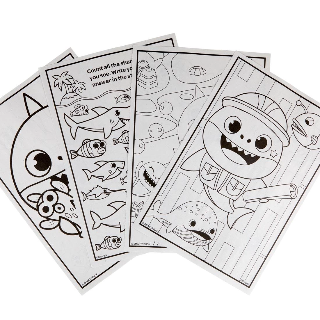 Kids can take a big bite of coloring fun with this book, featuring 96 pages of scenes starring Baby Shark and family. Add color with colored pencils, markers or crayons. Includes a sticker sheet. Great for kids ages 3 and up. Measures 7-3/4 x 10-3/4″.
