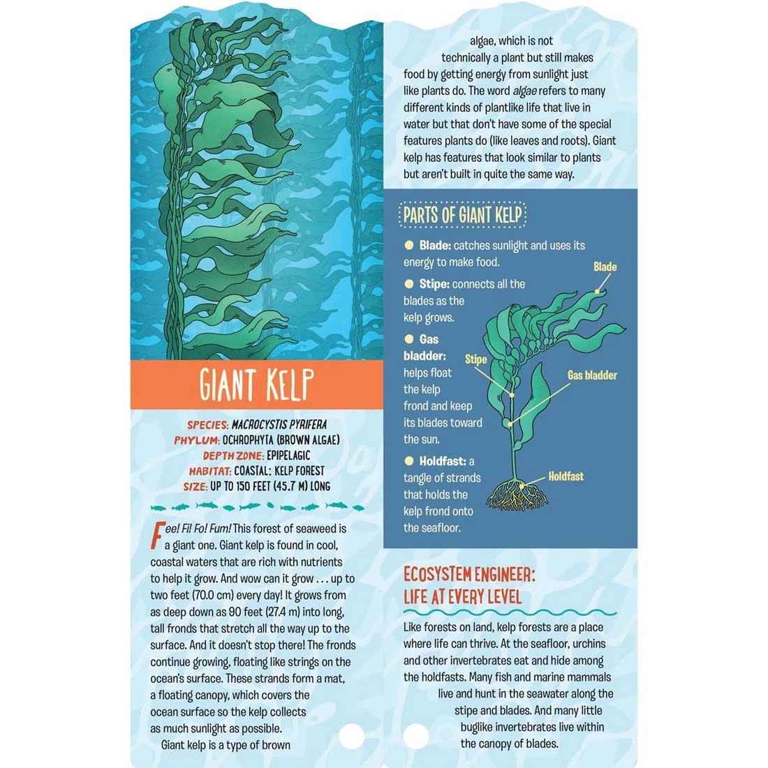 Explore the ocean’s biological wonders with this Fandex, a lively deck that’s packed with facts – many of which we’re only now beginning to understand. Meet Cuvier’s beaked whale, a mammal that holds the record for holding its breath underwater at 3 hours, 42 minutes! Giant kelp, which can grow up to 2 feet every day – that’s right, 2 feet! And the ancient coelacanth, often called a “living fossil”, which has changed very little in 400 million years and was once assumed to be extinct. Each creature is illustrated in bold, lifelike detail and includes information about its size, habits and habitat, and “Fin Facts” to enjoy. Deck includes 53 die-cut, full-color cards and covers 49 sea creatures/plants. Held together with a grommet, each card can be “fanned out” individually. Designed for ages 8 and up.