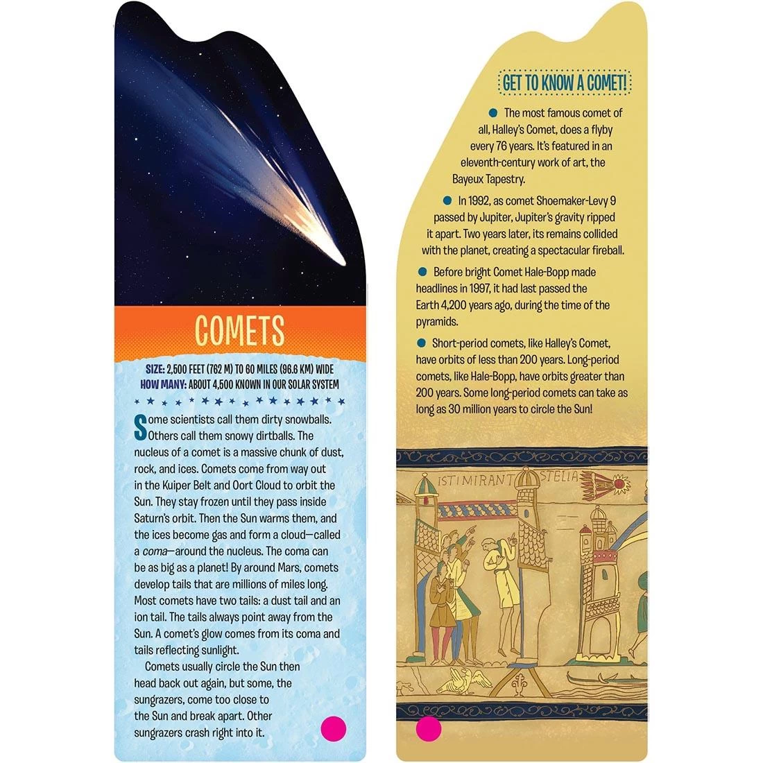 Launch out of this world on an exciting adventure! Die-cut cards take readers on a journey to explore the Universe, from its beginning to its end, and everything in between! Features planets, stars, space missions, a glossary and more. Concise, informative, and with out-of-this-world illustrations, this deck is the perfect guide to learning about space. 52 cards. Designed for ages 8-12.