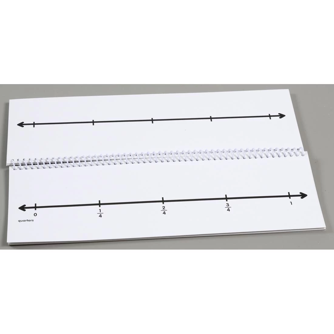 Help students practice and master fractions with this versatile write-on/wipe-off book. Features 18 different number lines, including thirds, quarters, fifths, eighths, tenths, twelfths and sixteenths, plus percents, single and double blank lines. Spiral-bound book features 20 pages and measures 4×12″.