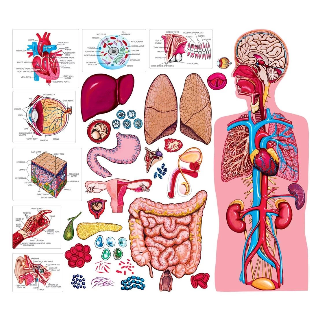 It can be hard to visualize the complex inner workings of the human body, but this life sized mannequin makes it easier to understand how it all works. Learn about health, anatomy, and body functions with this informative set. Includes a 24″ human body, 7 diagrams, major organs, 8 diseases and a manual.