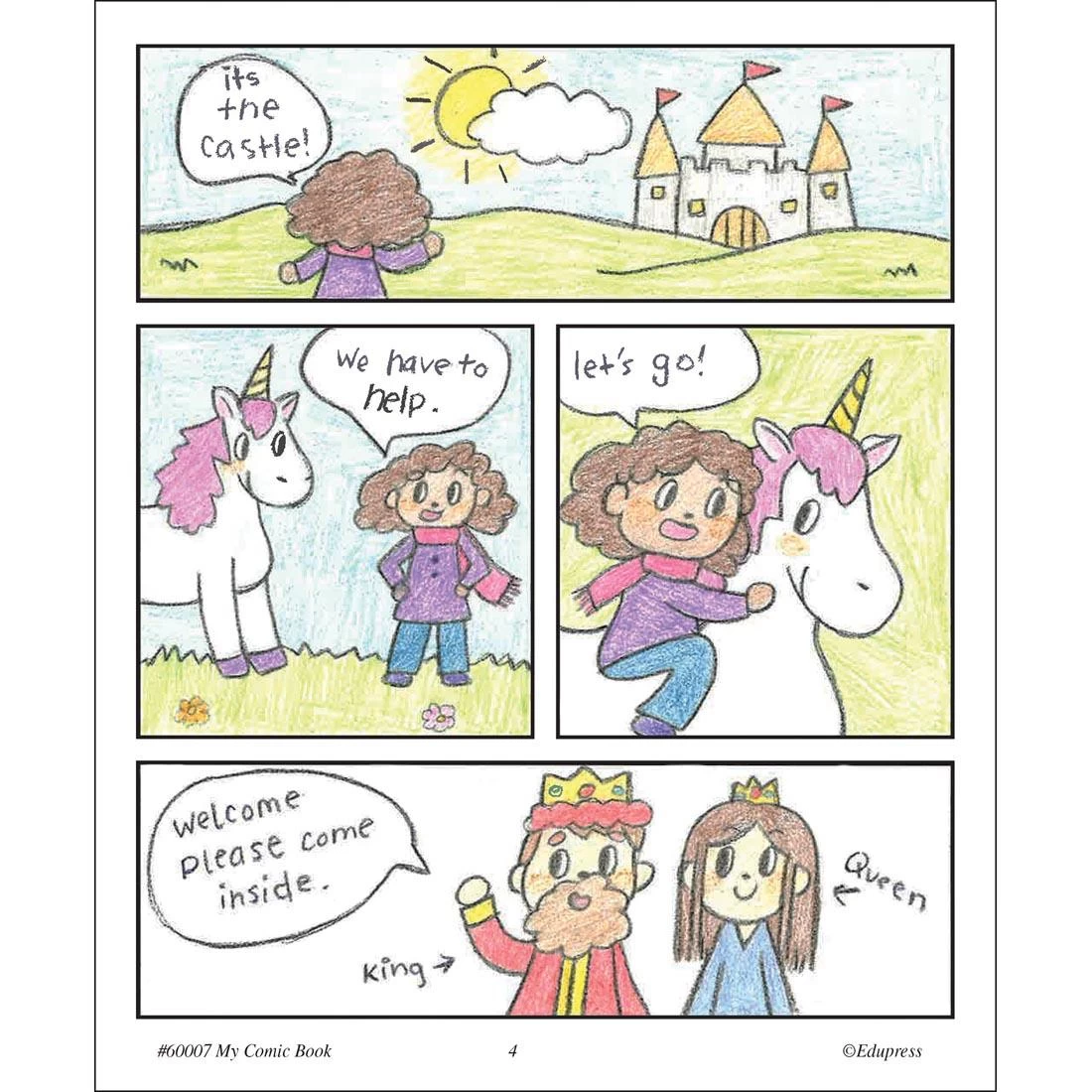 Teach children about story telling with comic books, then let them create their own. Features a short introduction, plus examples of speech bubbles, thought bubbles and sound effects that are typically found in comic books. The rest of the pages feature multiple panels, perfect for practice or the final product. 32 pages, paperback. Measures 7 x 8-1/2″.