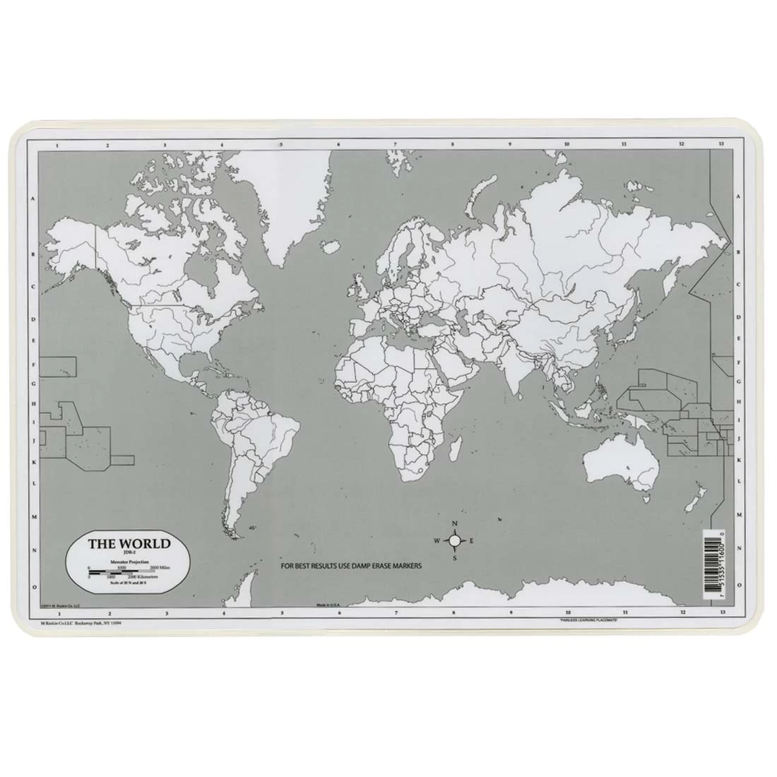 A delightful way for children to master new subjects and for adults to brush up on old ones! The front of the placemat is brightly colored, and laminated with a non-glare laminate. It features a world map. The black & white back features the map without the country and ocean names, so children can fill in the correct information with a wipe-off marker. Laminated surface wipes clean with a damp cloth. 17-1/2 x 12″.