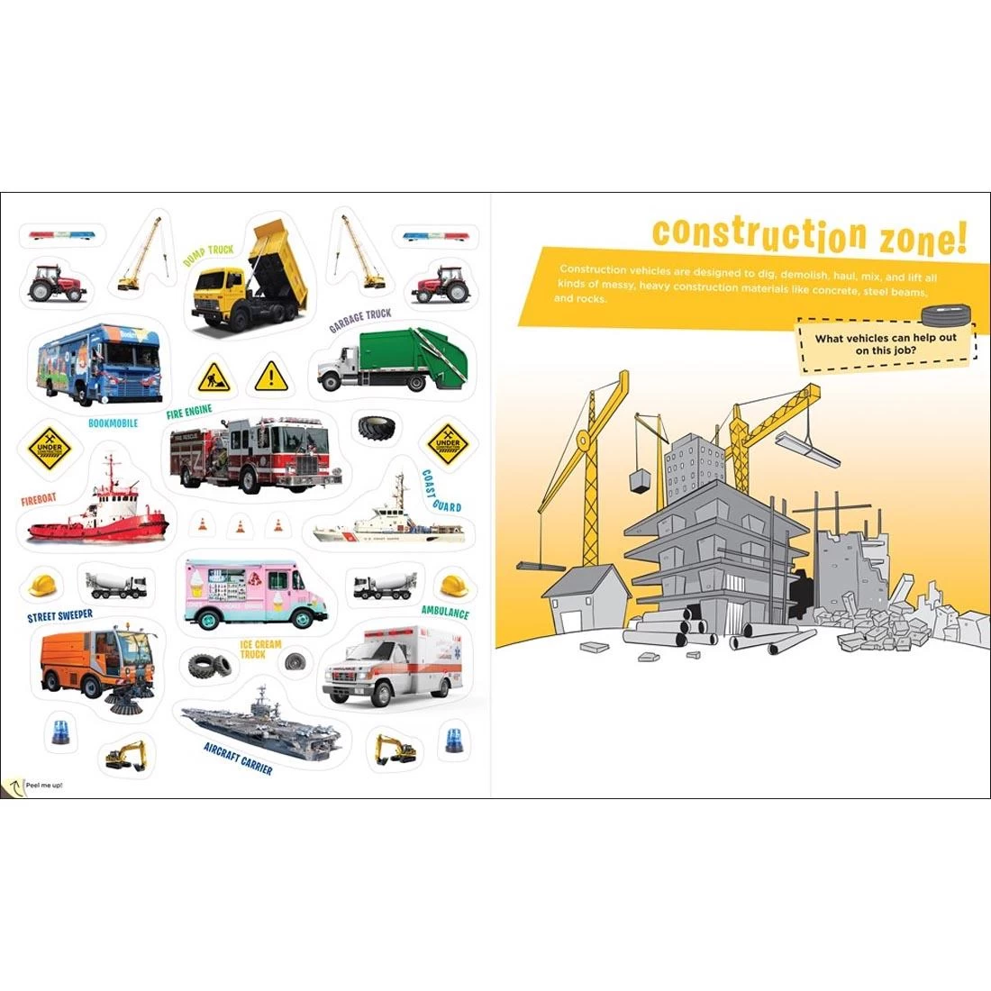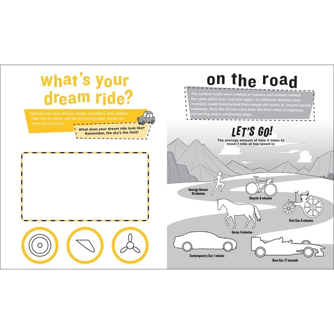 Discover an interactive sticker book that makes learning stick! Here’s how it works: first, read a question, then peel the sticker to reveal the answer. Next, use the stickers and your own drawing tools to decorate the activity pages. Finally, once all the stickers are peeled, remove the overlay for a Peel + Discover surprise! Features vehicles of all shapes and sizes, from the space shuttle to the horse and buggy, muscle cars to pirate ships, ice cream trucks, submarines, Zambonis and more. Plus, put on an airshow, build a train, win a boat race, and invent a brand new vehicle as you learn about the machines that take us over land, across the water, through the sky, and all around the world. Contains 6 sheets of stickers, 20 interactive activity pages, and 60 fascinating facts. For ages 6-10.