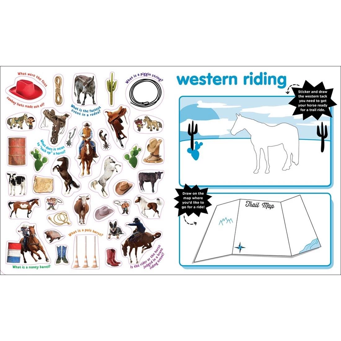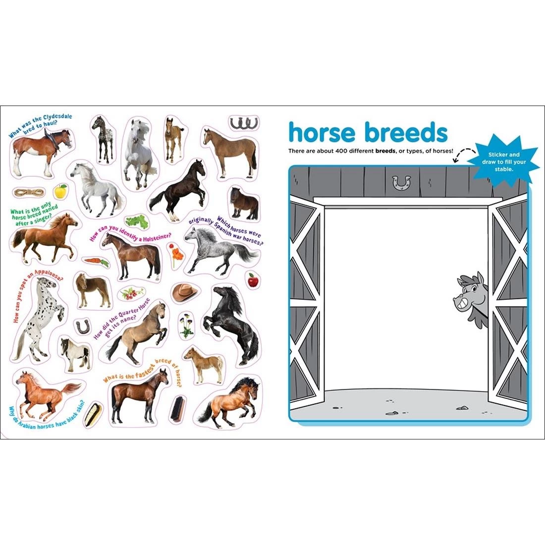 Discover an interactive sticker book that makes learning stick! Here’s how it works: first, read a question, then peel the sticker to reveal the answer. Next, use the stickers and your own drawing tools to decorate the activity pages. Finally, once all the stickers are peeled, remove the overlay for a Peel + Discover surprise! gentle ponies, spotted Appaloosas, show ribbons, cowboy boots, and speedy Thoroughbreds that can run over 43 miles an hour! You can even learn about grooming and training as you sticker and draw to fill your barn with horses and everything you need to care for them. Contains 6 sheets of stickers, 20 interactive activity pages, and 60 fascinating facts. For ages 6-10.