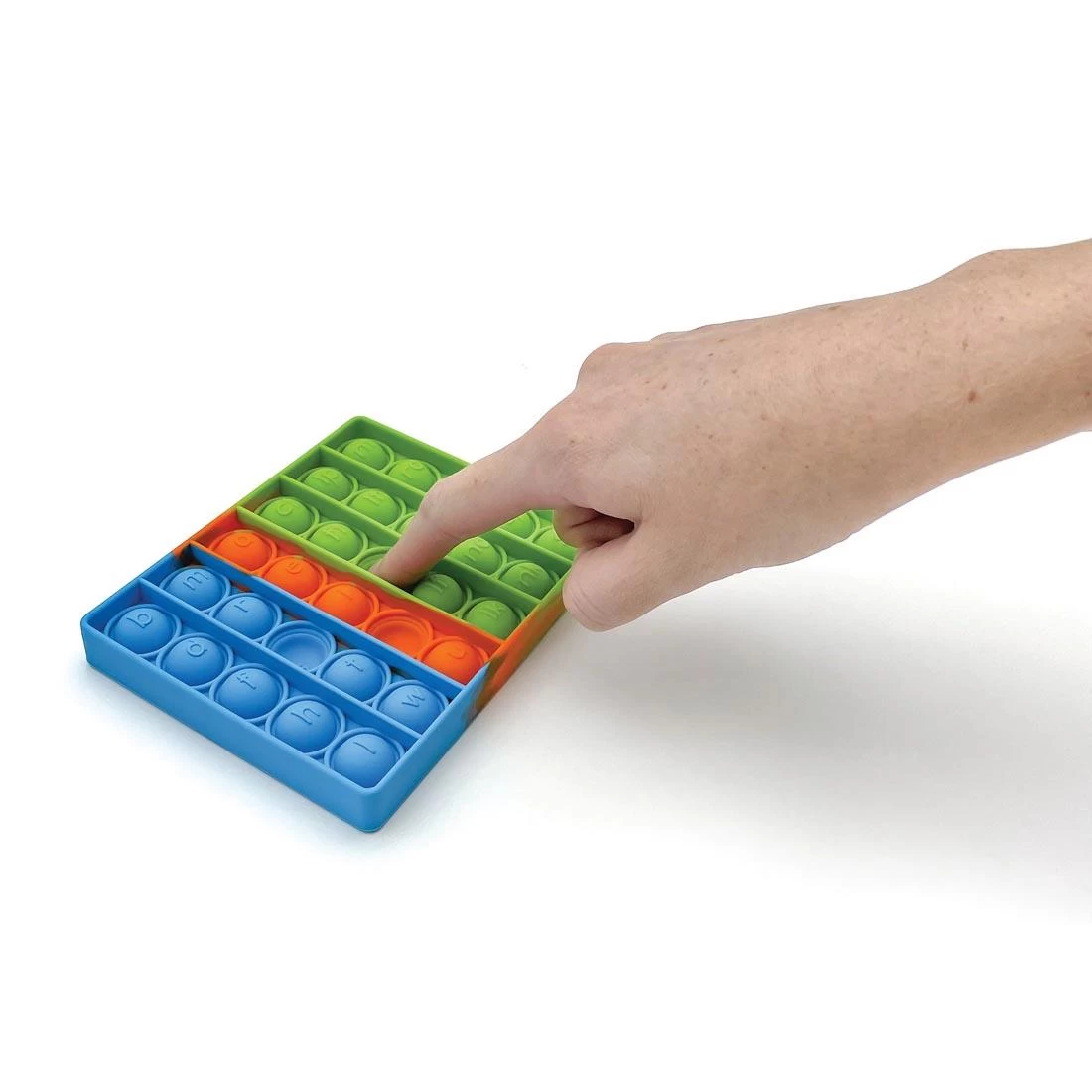 Use this learning fidget to help children visualize reading and spelling concepts. Children can practice blending phonemes and building words as they push letters on the three colored columns – beginning sounds, vowel sounds, and ending sounds. Create a literacy center by having students record the words they make. Soft material is easy to clean. Measures approximately 4-3/4 x 3-3/4 x 1/2″.