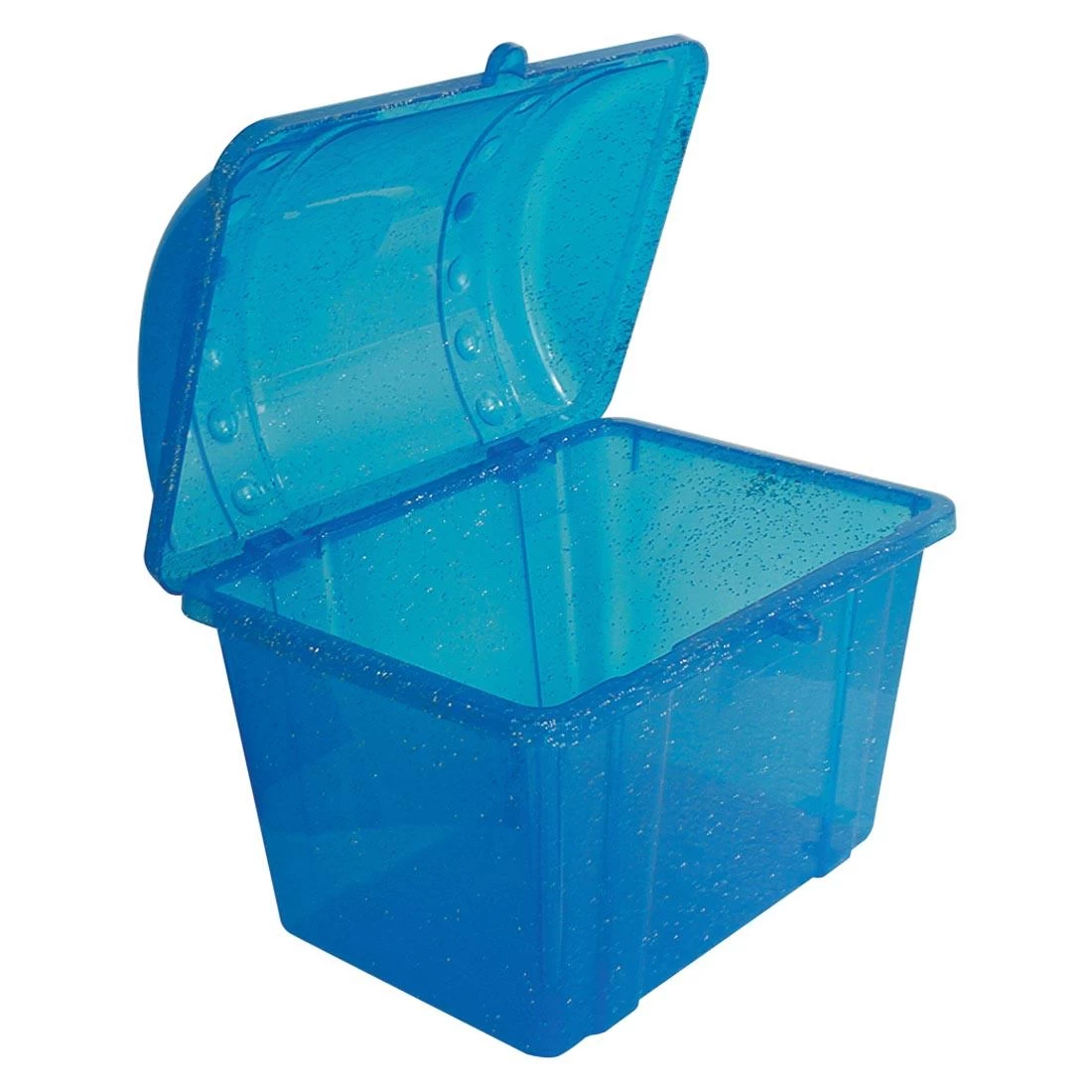 Small treasure chest is the perfect size to store classroom incentives including stickers, pencils and more. Blue plastic chest features a gloss finish with sparkle flecks. Measure 9-3/4 x 7-1/2 x 7-1/2″.