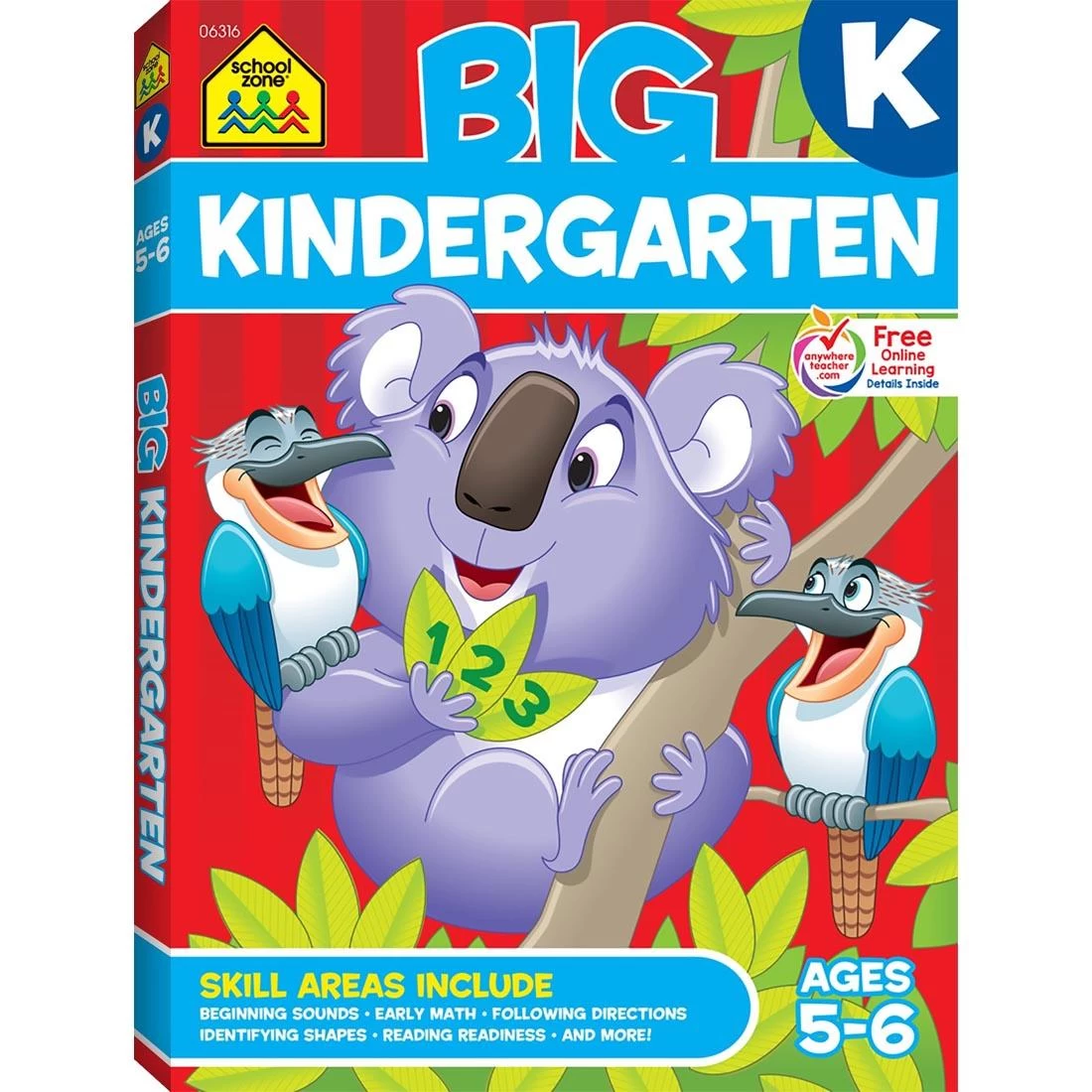 This Big Kindergarten Workbook combines popular 32-page School Zone workbooks into one convenient 320-page volume. Child-friendly exercises and full-color illustrations make learning fun. Use Big Workbooks to reinforce or review grade-level skills or prepare for the upcoming school year. Contents include: Numbers 1-12, Alphabet, Hidden Pictures, Thinking Skills, Transition Math, Reading Readiness Book 1, and Reading Readiness Book 2, Zoo Scholar, Following Directions and Colors. Ages 5-6.