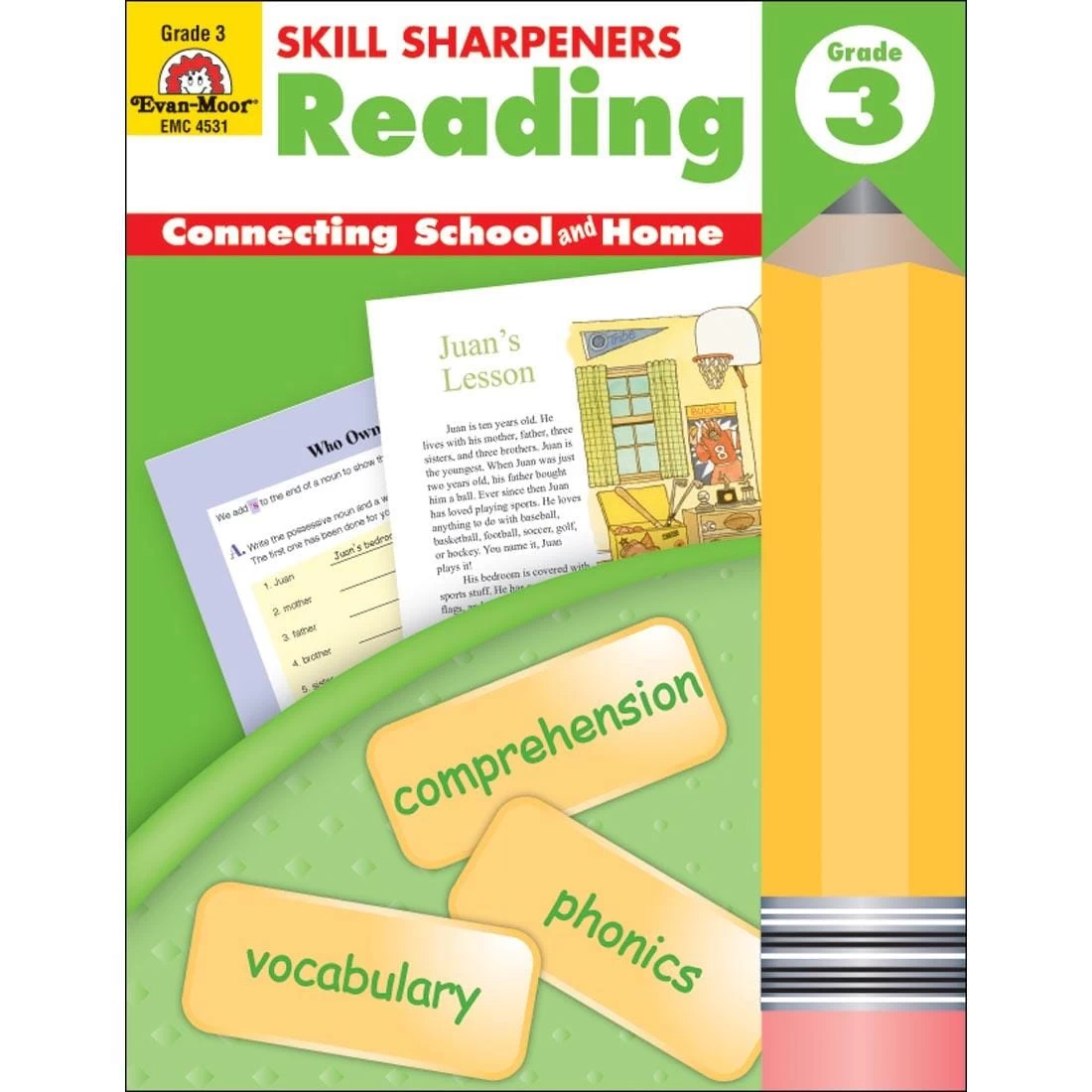 Skill Sharpeners Reading contains engaging full-color stories followed by activity pages that practice a variety of reading skills. Provides 17 motivating fiction and nonfiction stories, for example “Shea and the Leprechaun”, “A Mouse Adventure”, “Inuit, People of the Far North” and “Bats”. Activity pages include comprehension questions, a vocabulary exercise and a sequencing activity for every story. Other skills addressed include main idea, parts of speech, synonyms & antonyms, alphabetical order and contractions. 144 pages.