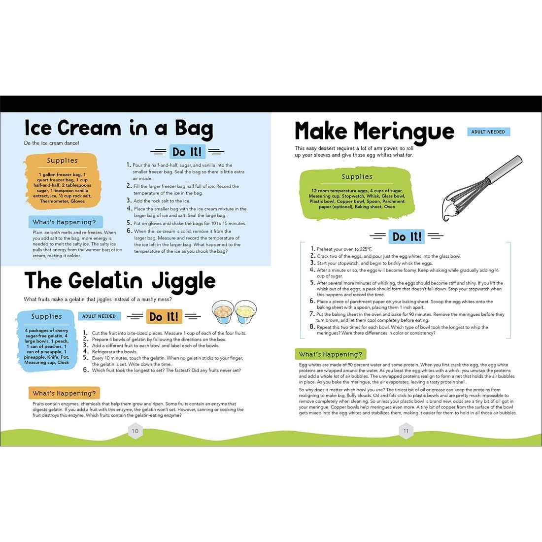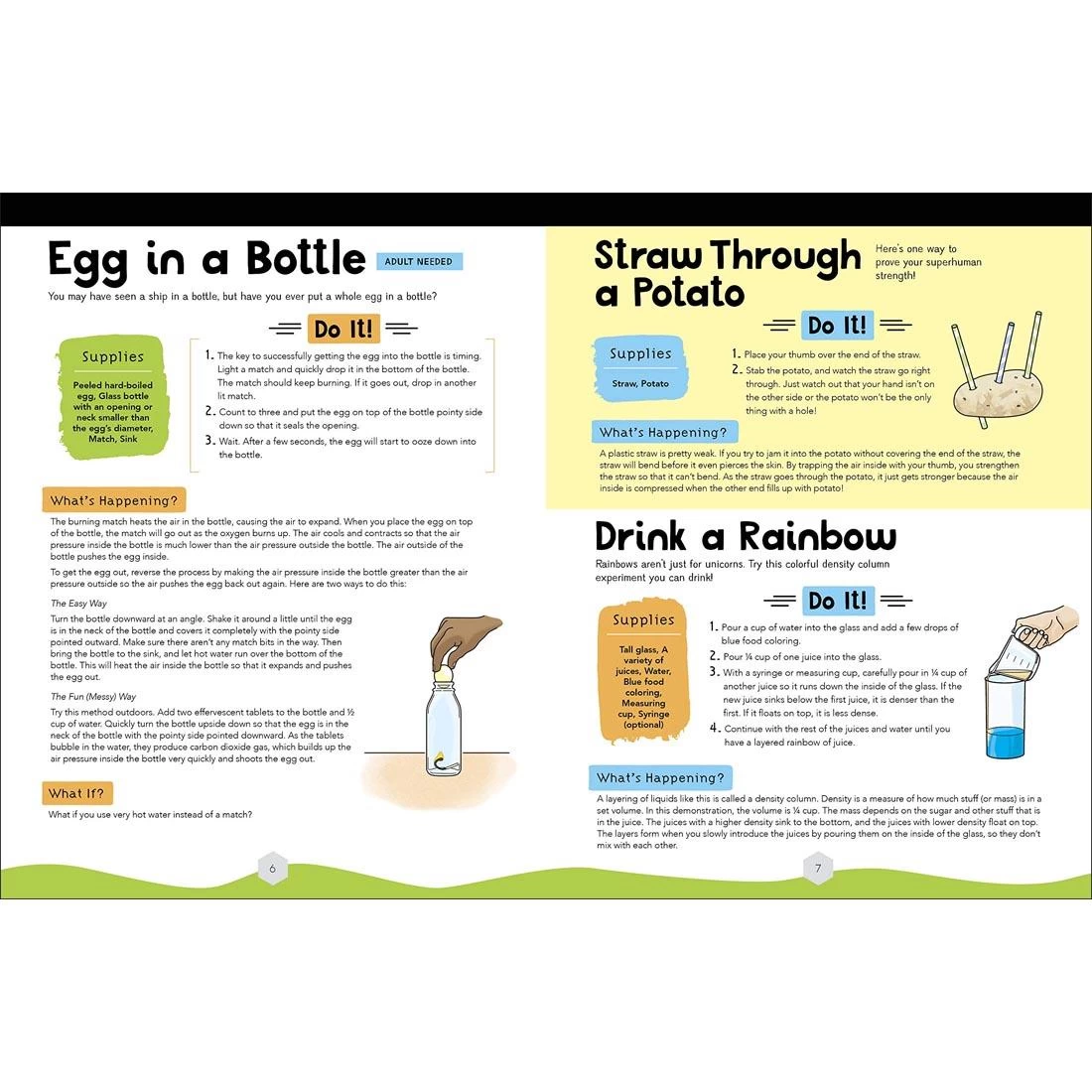This fact- and fun-filled book includes tons of simple, kid-tested science experiments, many of which can be done with items found around the house, and require little to no supervision. Each experiment features safety precautions, materials needed, step-by-step instructions with illustrations, fun facts, and further explorations. Learn how to trick your taste buds, use yeast to blow up a balloon, freeze hot water faster than cold water, make things disappear, power a boat with soap and more. Features more than 80 experiments to provide budding scientists with go-to, hands-on guides for learning the fundamentals of science and exploring the fascinating world around them. Paperback by Elizabeth Snoke Harris. 64 pages. For ages 8 and up.