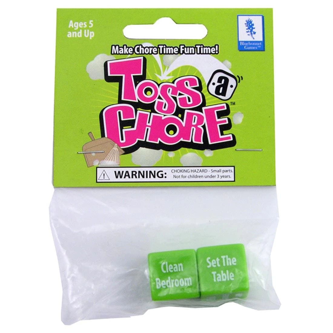Make chore time fun with Toss A Chore dice! Roll the die to see which chore each person is assigned. Includes a pair of dice with 12 different jobs, such as Dust, Empty Trash, Clean Bathroom, Set The Table, Wash Windows, Parent Chooses a Chore, Kid Chooses a Chore and more. A great way to distribute household tasks in an easy and fair manner. For ages 5 and up.