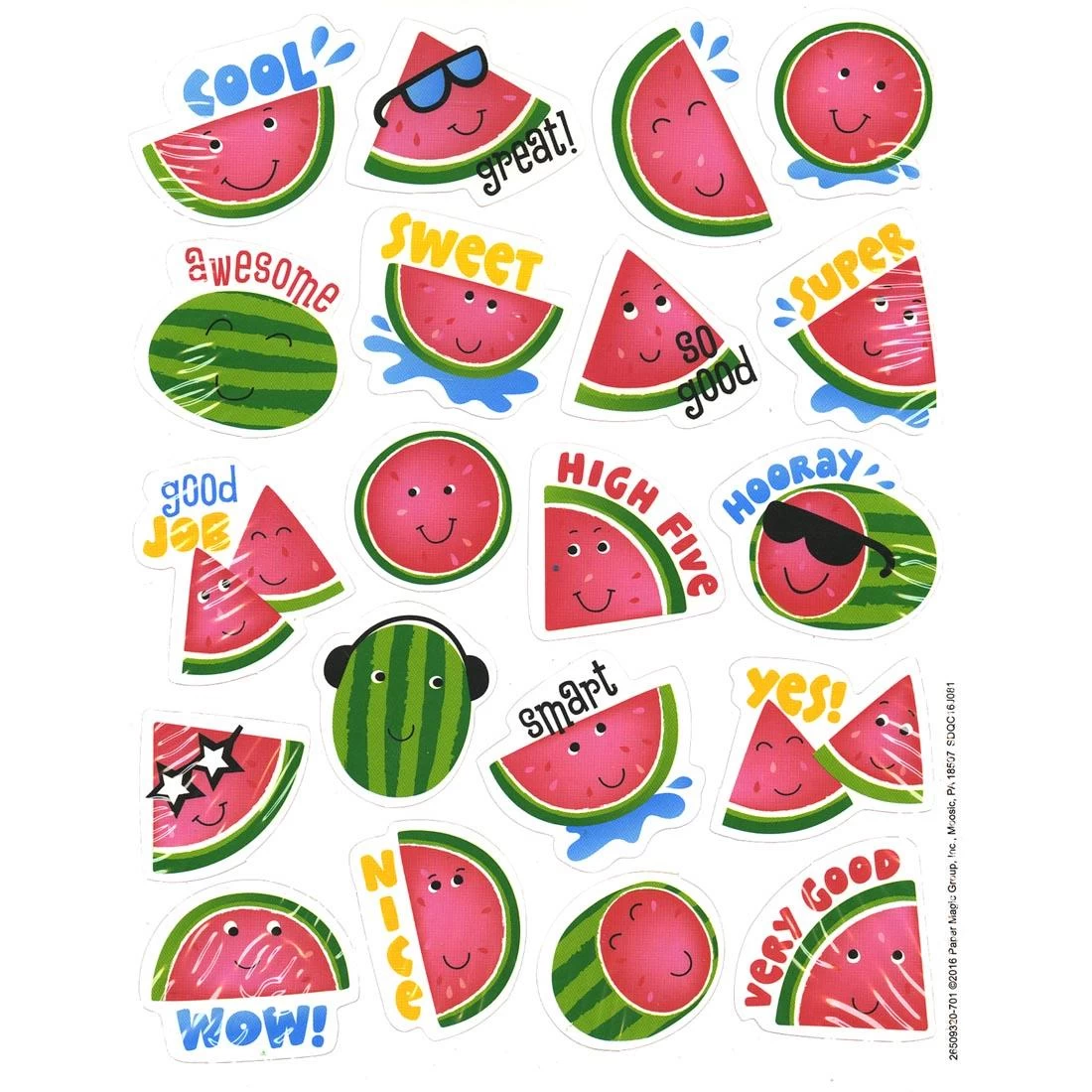 These fun, colorful stickers can be given as rewards, attached to graded papers or used for delicious-smelling crafts. Watermelon scent is released when stickers are scratched. 80 self-adhesive stickers per package. Sizes range from 1″ to 1-1/4″.