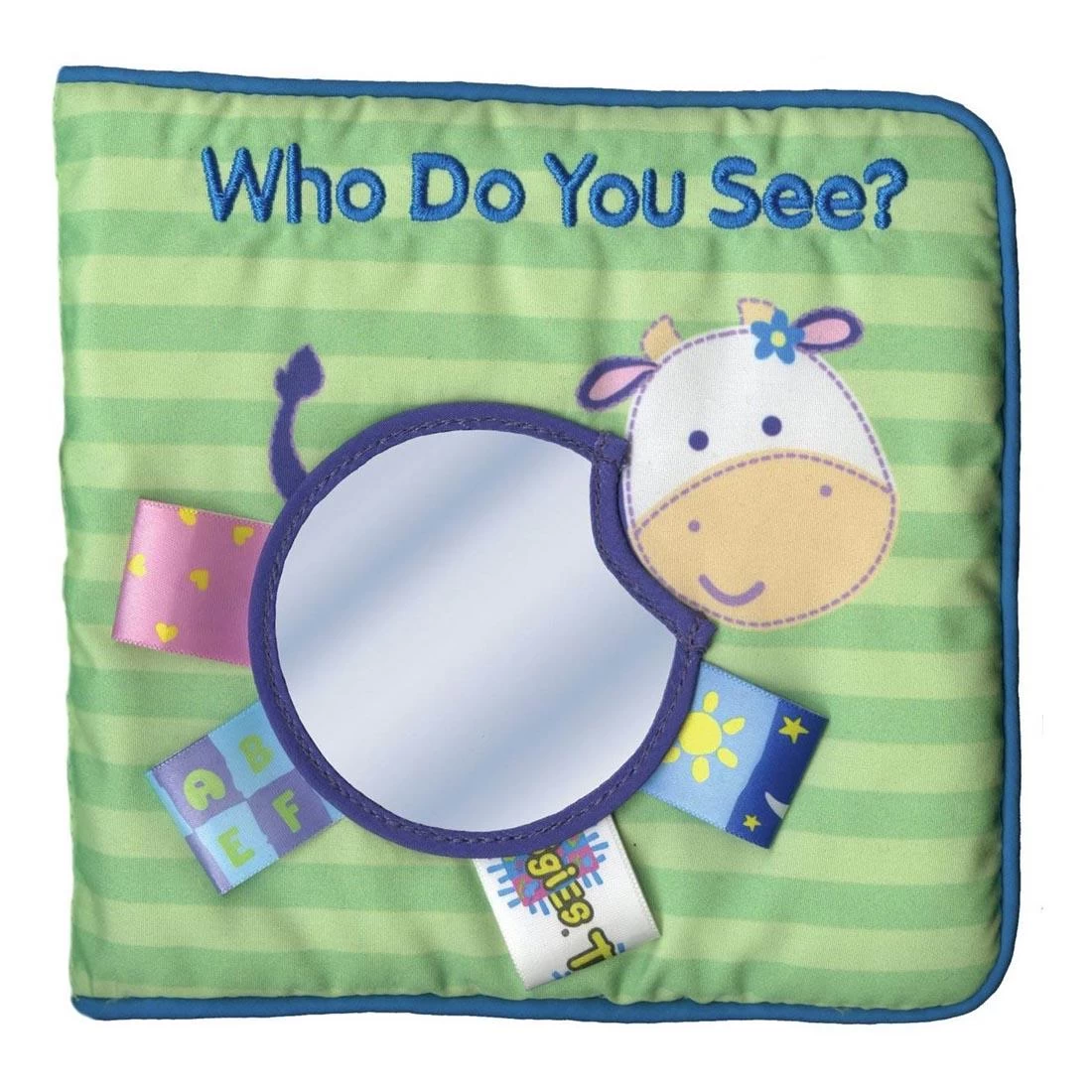 Cloth book features engaging mirrors and the trademarked, textured tags that babies can’t seem to resist. With familiar animals, self-discovery mirrors, engaging colors, and Taggies tags throughout, Who Do you See? will quickly become a favorite story time choice. 6 pages. For ages 0-3.