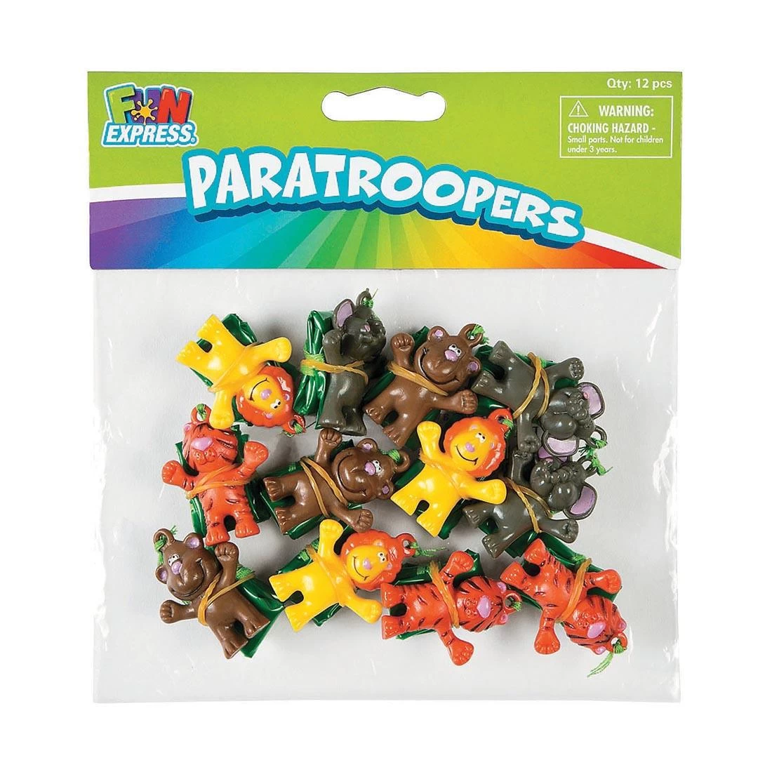 These zoo animal paratrooper toys are the perfect addition to reward incentive treasure chests, zoo party favors and everyday fun. 12 animal paratrooper toys per package in assorted colors. Animals measure approximately 1-1/2″.